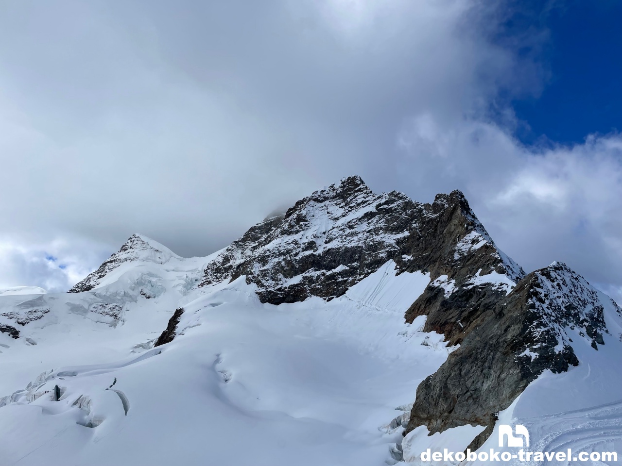 グレイシャープラトー(氷河高原)と呼ばれる場所からは、ユングフラウ、メンヒを眼前に見ることができます。ユングフラウ三山のもう一つのアイガーはどれなのか分かりませんでした…
