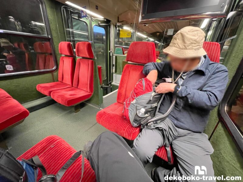 向かいに座る、我々と同じ男親子と会話しながら、景色も楽しみながら列車の旅路を楽しみます。