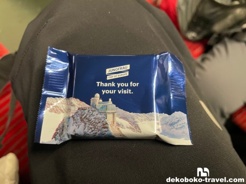 乗車すると、ガイドさんから記念のチョコレート(ユングフラウヨッホの写真のパッケージ)をもらいました。