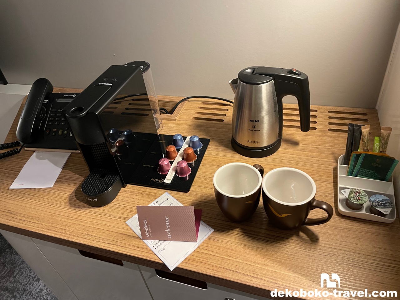 電気ポットはもちろんですが、コーヒーメーカー(ネスプレッソ)も部屋に設置していてちょっとリッチな気分を味わえました。