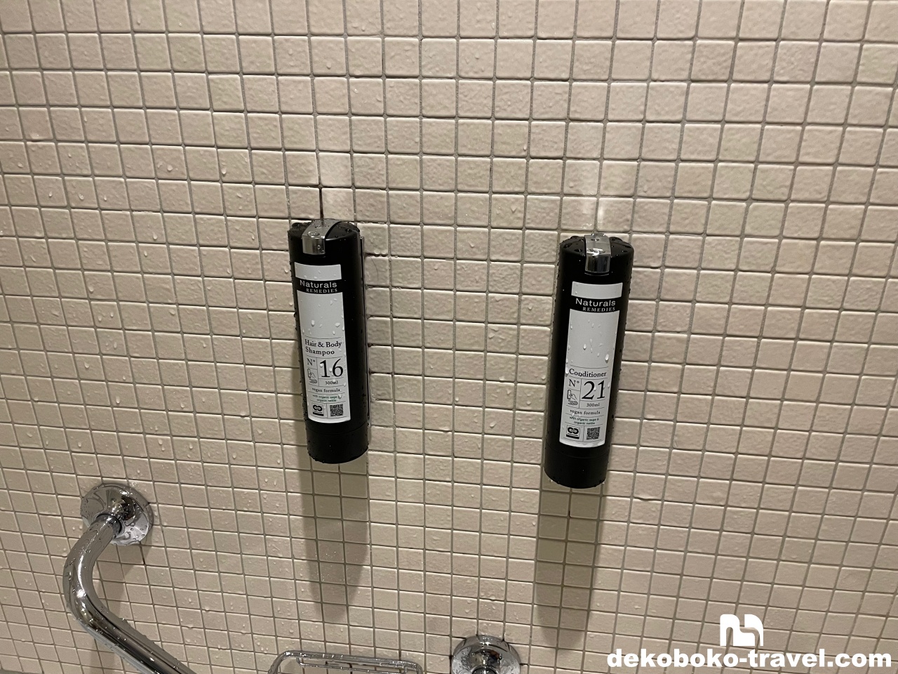 ところで、風呂場の2つのボトルですが、「ヘア&ボディシャンプー」と「コンディショナー」という2種類でした。