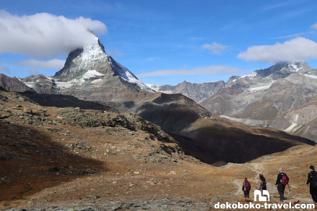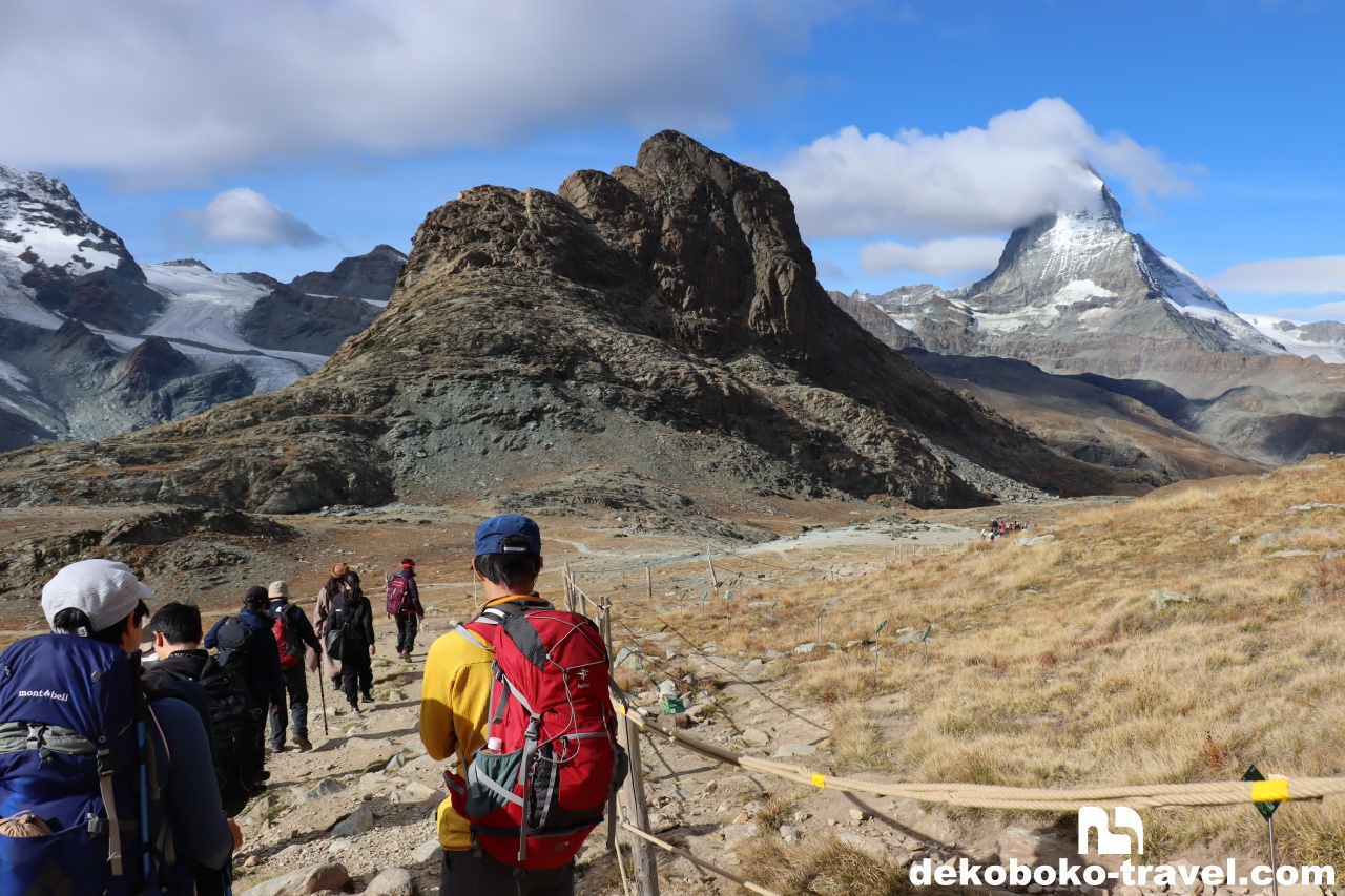 ここからは左手にマッターホルンを見ながら、緩やかな下り坂を降りていきます。
