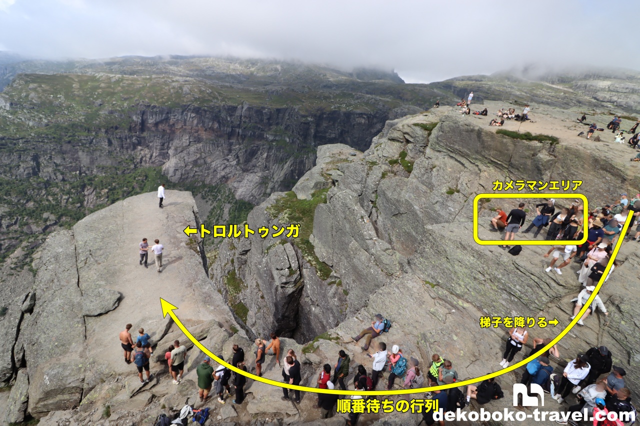トロルトゥンガの撮影スポットに行くには、余程早く着かない限りは行列に並ぶことになります。上にも書きましたが、なるべく早く並んでおくことをオススメします。